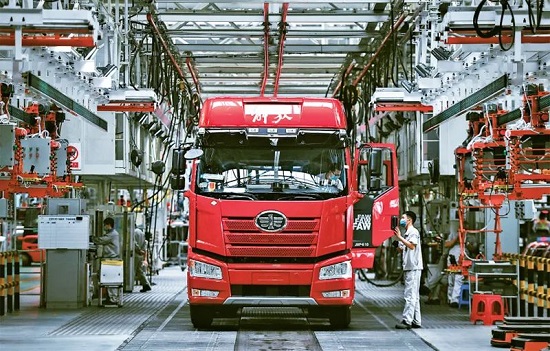 企業強則國家強,加快建設世界一流企業是全面建設社會主義現代化國家的重大任務,是新時代國有企業的戰略目標。近來,一汽解放集團股份有限公司生產按下“加速鍵”。圖為2022年6月15日,工人在位于吉林長春的一汽解放總裝車間內裝配車輛。 新華社記者 許暢/攝