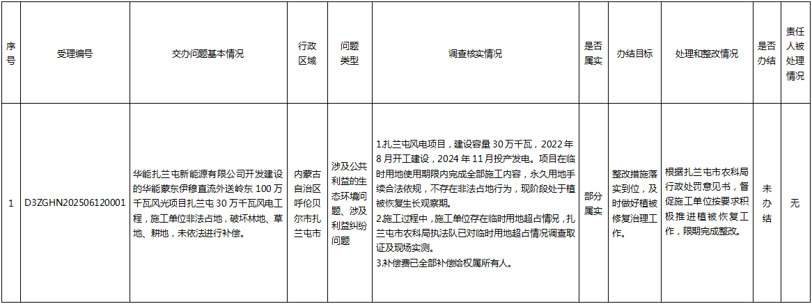 中央生態環境保護督察群眾信訪舉報轉辦和邊督邊改公開情況一覽表